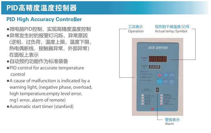 方便操作的機(jī)能滿載,適合對應(yīng)工廠的干燥機(jī)。