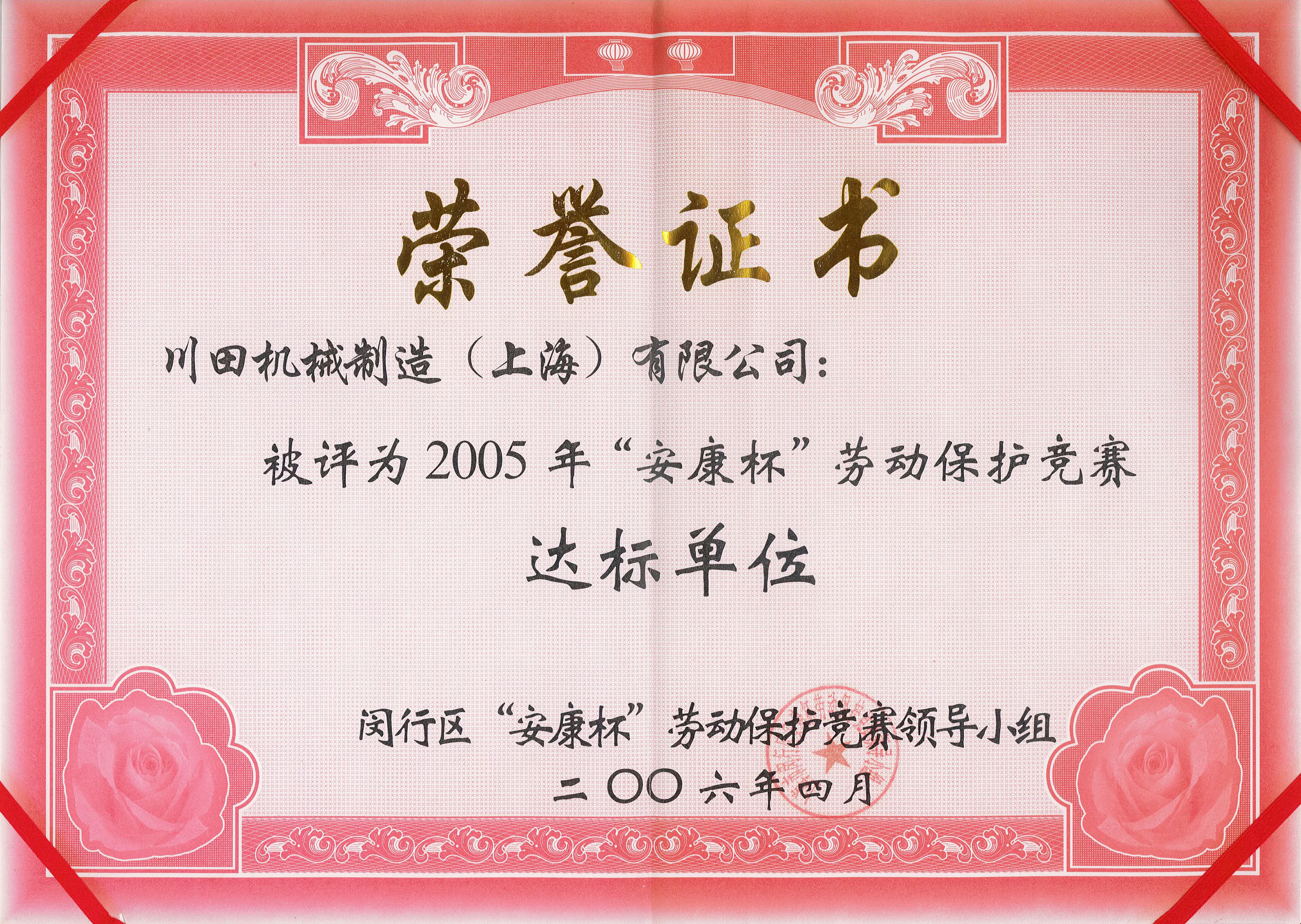 2006 閔行區(qū)安康杯勞動(dòng)保護(hù)競(jìng)賽優(yōu)勝單位